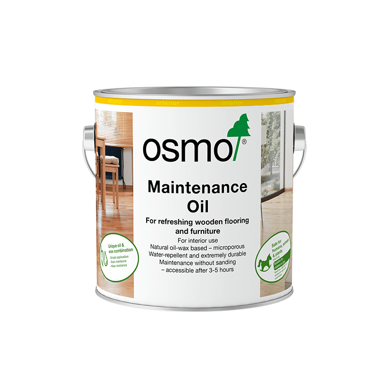 Maintenance Oil is also a renovation product. It’s timely use can prevent major sanding and renovation work. However, if the existing surface is badly scratched or worn, it should be lightly sanded and finished with one of the Osmo Polyx®-Oils, rather than use Maintenance Oil.