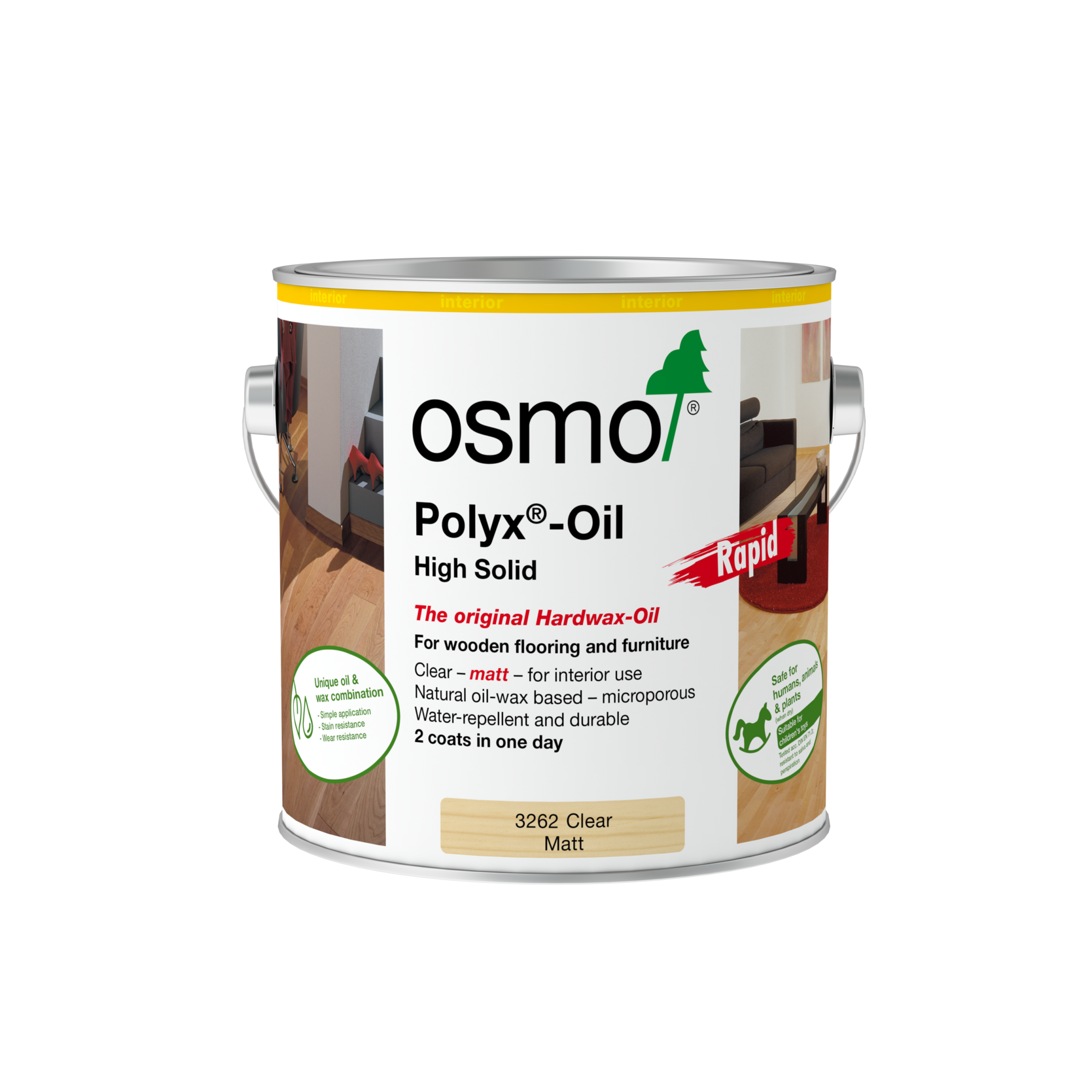 - In addition to the clear satin and clear matt finishes, Polyx®-Oil Rapid is now available in 7 colours. These colours can be tinted in either a satin or matt base.