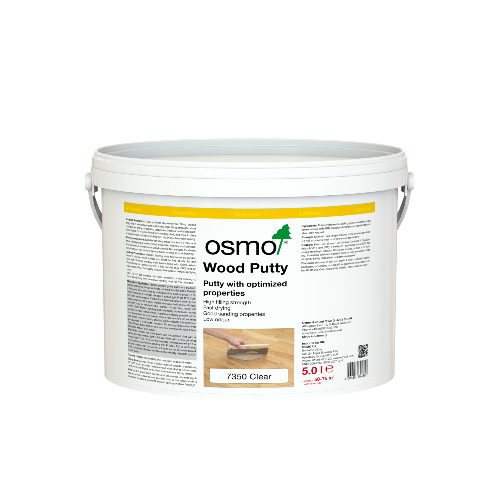 Osmo Wood Putty is a low odour polymer dispersion for filling cracks, joints and nail holes etc up to 2mm, on sanded timber flooring. It can be used universally on all wood species. It is not suitable for use on cork.